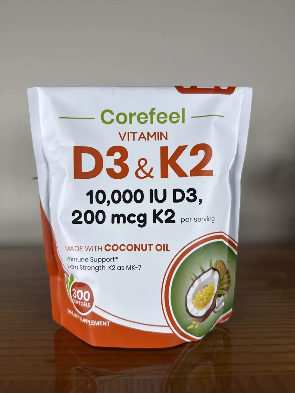 2. Working Together for Daily Wellness: Corefeel Vitamin D3 aids calcium absorption, while Vitamin K2 directs calcium to where it's needed most—your bones. We've also added natural coconut oil to enhance absorption. These three ingredients work synergistically to support joint flexibility, heart health, strong teeth, immune function, and even help maintain daily energy levels and emotional balance.