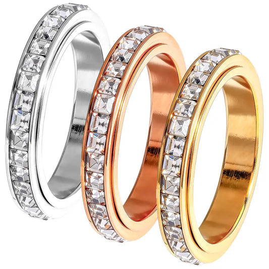 Anxiety Relief Ring – Titanium Steel Spinner Fidget Band with Cubic Zirconia | Perfect Gift for Her/Him