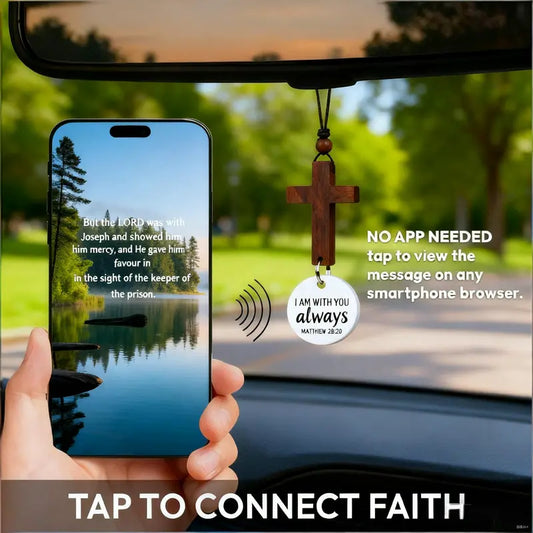 SPEICHERN 40%Bible Verse Car Rearview Hanging Cross Ornament With NFC