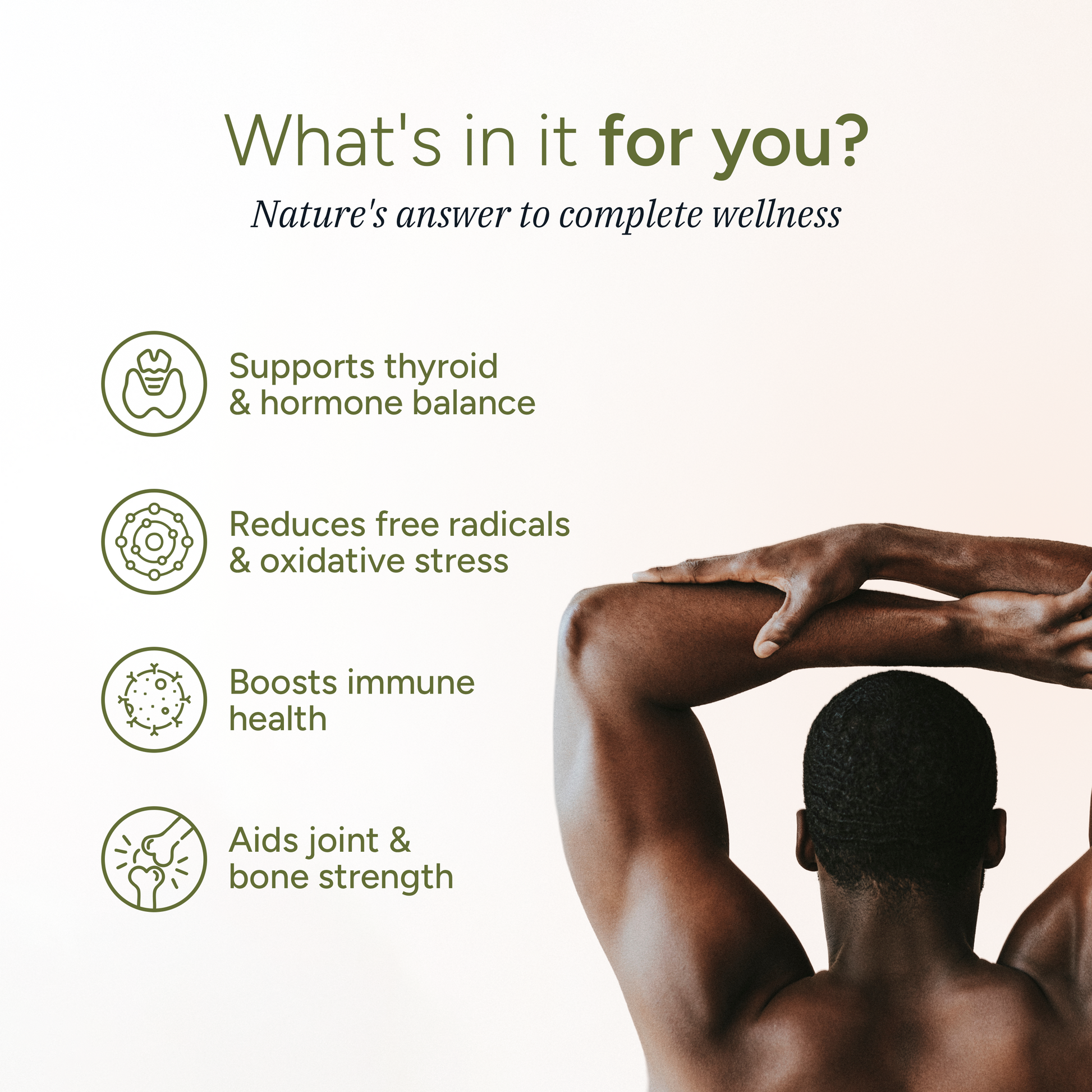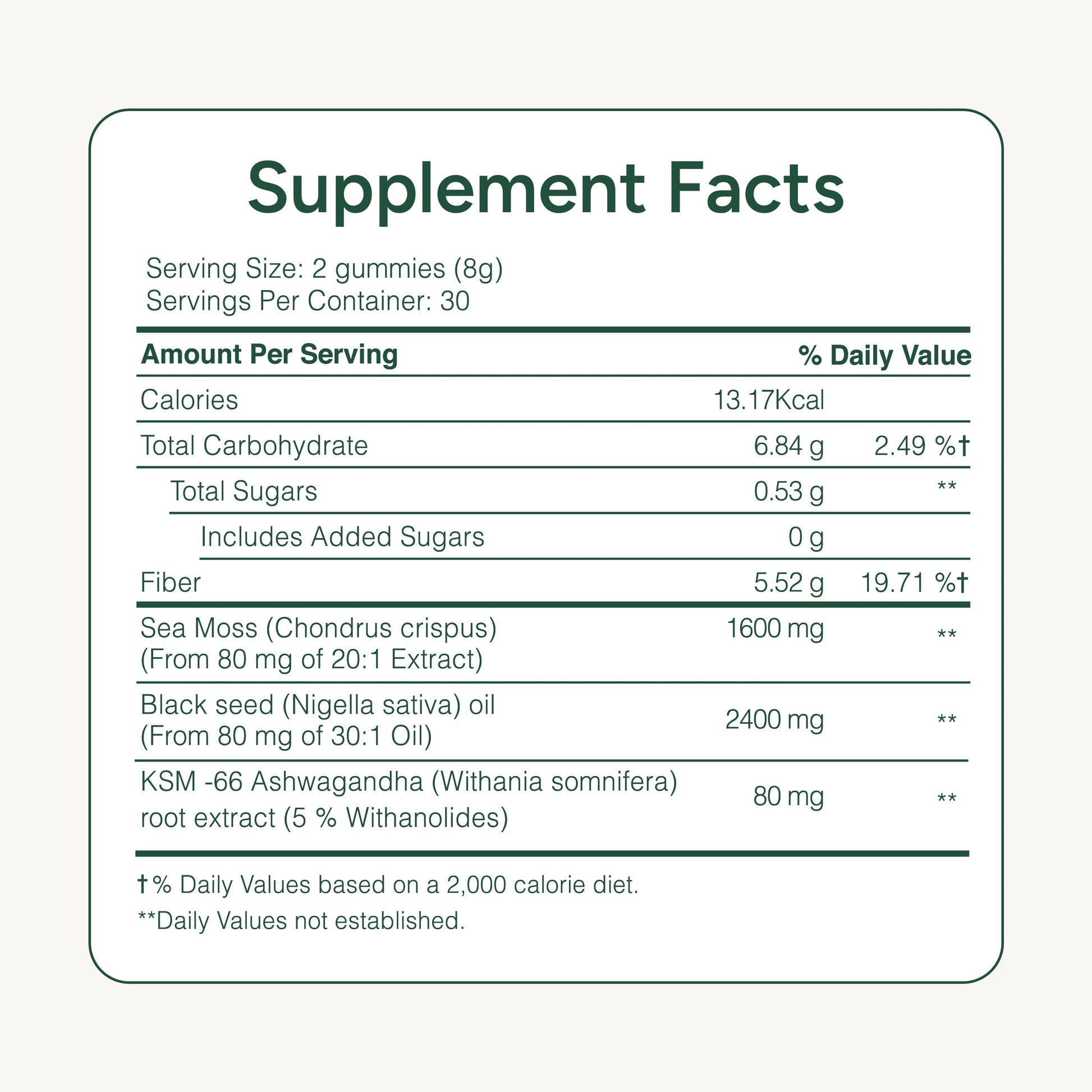 check_circle A potent fusion of Sea Moss, KSM-66 Ashwagandha, and Black Seed Oil.
