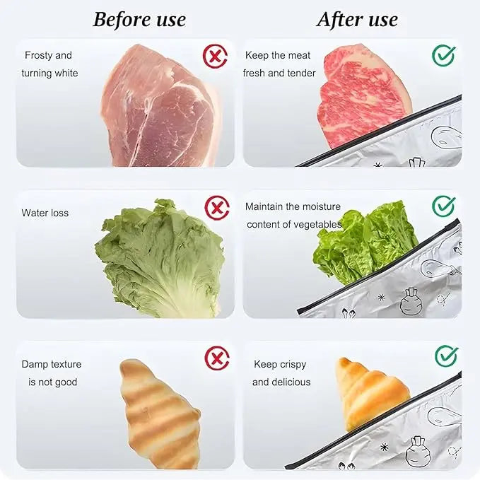 These foil freezer bags are perfect for storing vegetables, fruits, and meat, keeping everything fresh and neatly organized.