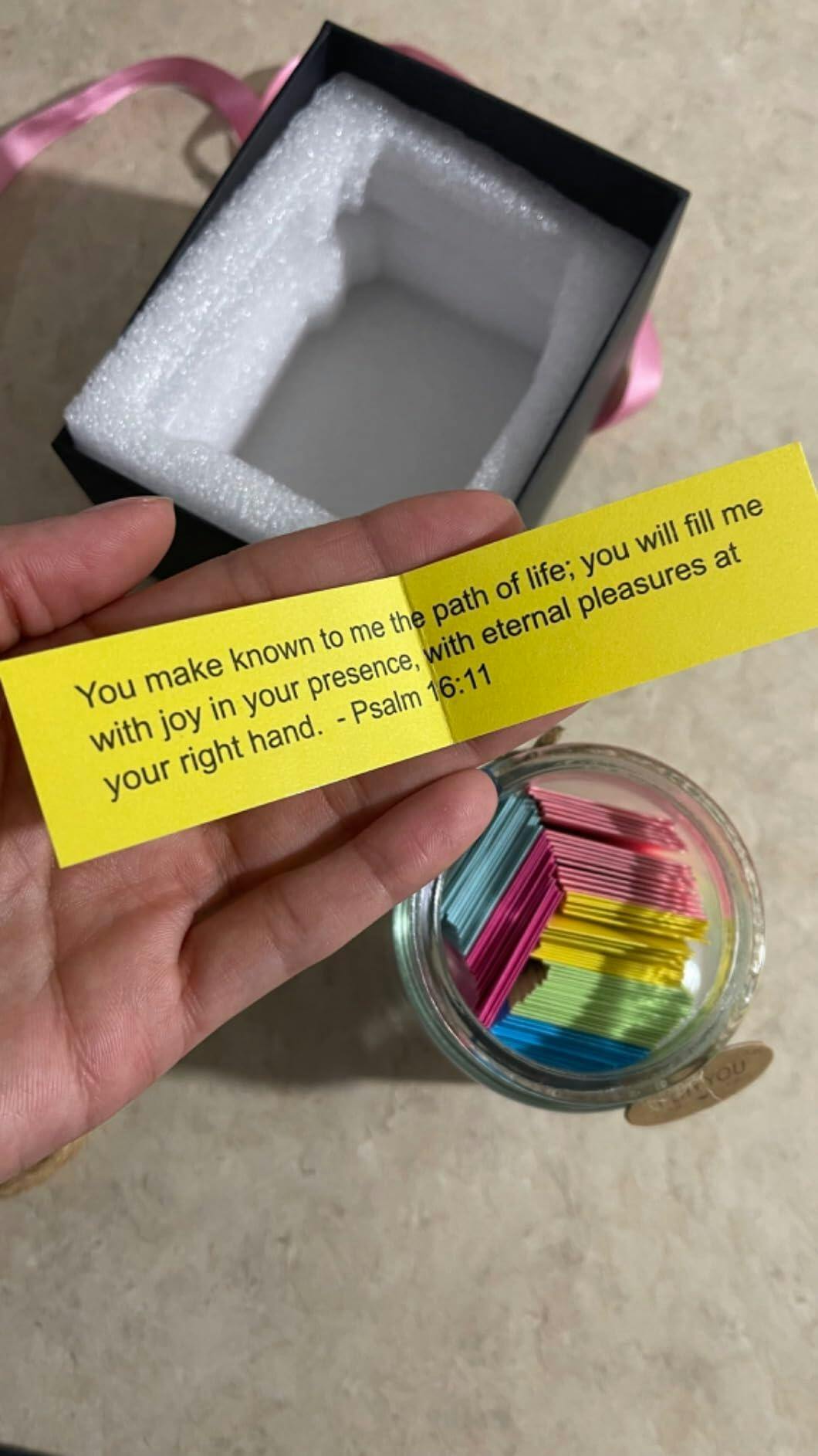 Each time you engage with your Bible jar, you're reminded of the abundance of happiness within and the power to uplift those around you. Let it be a beacon of light in your journey toward a more joyful and connected existence.